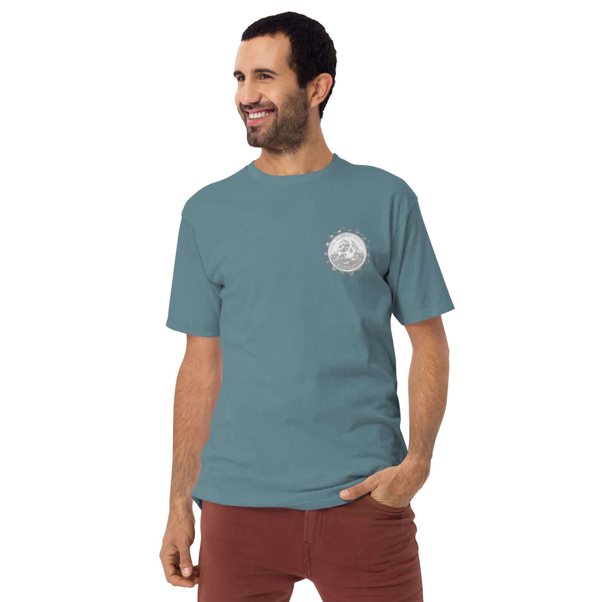 Elevate your outfit with the men’s premium heavyweight tee. The tee has a structured, classy fit and is both durable and soft thanks to its ring-spun cotton material. Layer the t-shirt or wear it on its own and enjoy great looks with little effort!